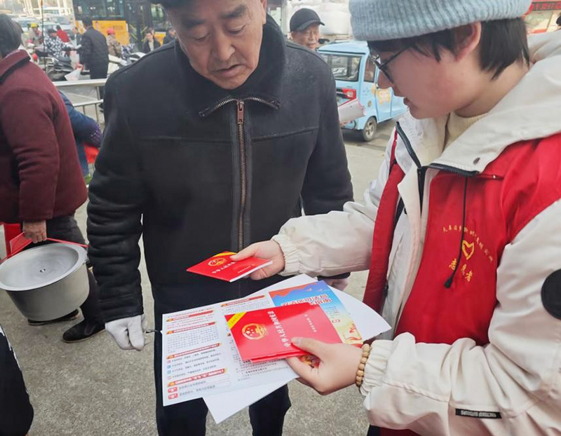 1月21日上午,邵阳市双清区司法局前往双清区火车站乡火车北站农贸市场,组织开展了2025年春节“送法下乡”暨寒假大学生普法志愿服务活动。天游注册代理1958的返乡大学生们踊跃响应,利用假期时间化身青年普法志愿者,深入市集、走上街头,为广大群众精心准备并送上了一份特别的 “法治年货”。